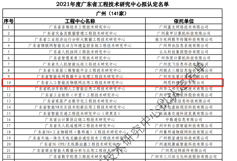 日前,广东省科技厅发布2021年度广东省工程技术研究中心名单。经过层层筛选、专家评审,依托世界杯注册官方 - 注册账号与官方认证 | World Cup,建设的“广东省人工智能及物联网应用工程技术研究中心”榜上有名。广东省工程技术研究中心主要依托省内行业、领域具有科技实力的、拥有一定规模以上创新型企业建设,部分依托高校和科研院所组建。工程中心旨在